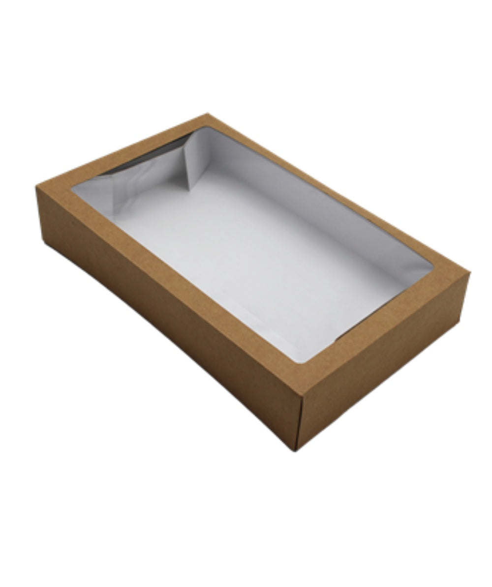 Showcase your tray bake cakes in style with our premium kraft boxes featuring a clear acetate window for perfect product visibility. These eco-friendly boxes are designed to highlight your baked creations while keeping them fresh and protected, making them ideal for bakeries, cafes, and home bakers selling their goods.